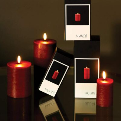 Die Uyuni-Kerzen haben ein sanft flackerndes LED-Licht, dass zur Wachsbasis passt. Das gesamte Ambiente eines Raums bei Kerzenschein, ohne die schädlichen Chemikalien, die bei regelmäßiger Verwendung von Wachskerzen freigesetzt werden.