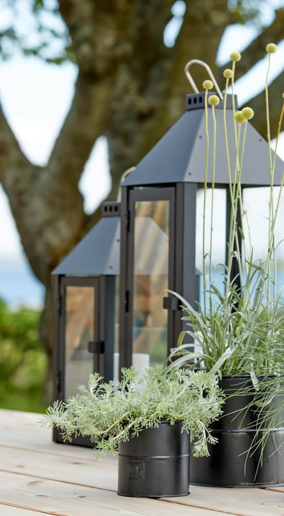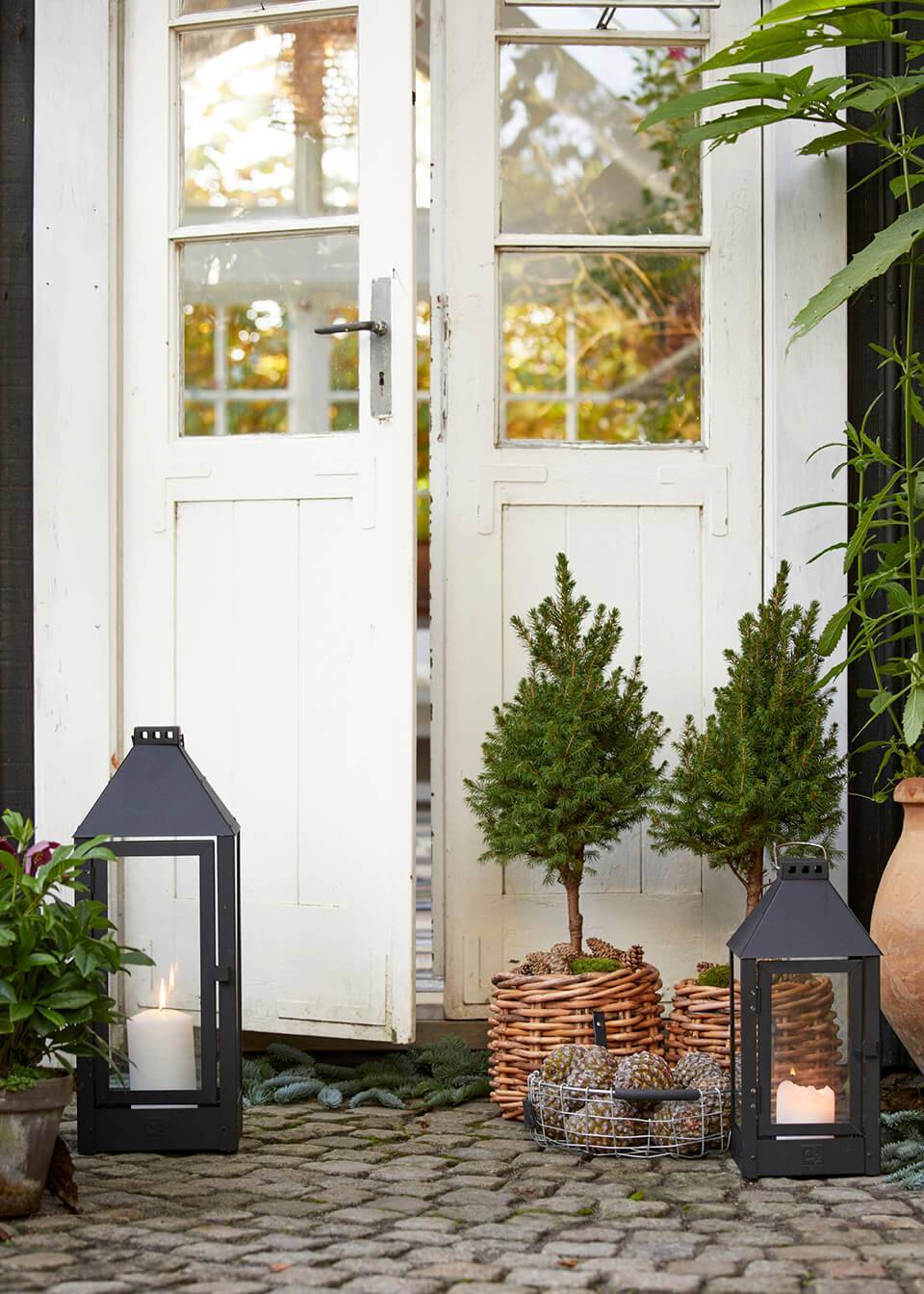 Die A2 Living Laterne hat ein schlichtes, minimalistisches und rustikales Design. Es besteht aus soliden Materialien und ist so konzipiert, dass es das ganze Jahr über draußen stehen kann.