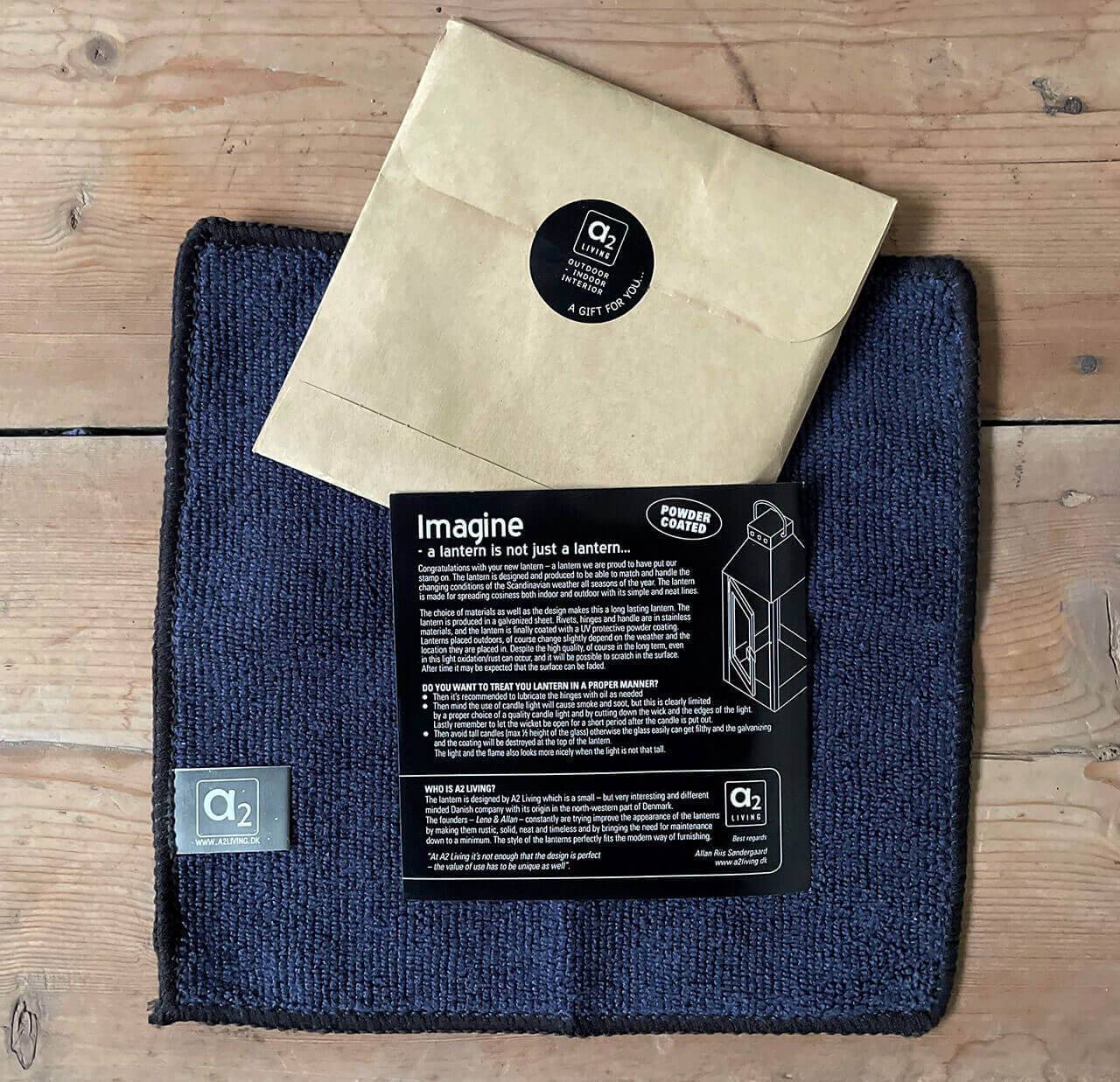 Jede Laterne wird mit einem Mikrofasertuch zum Reinigen von Glas etc. geliefert.