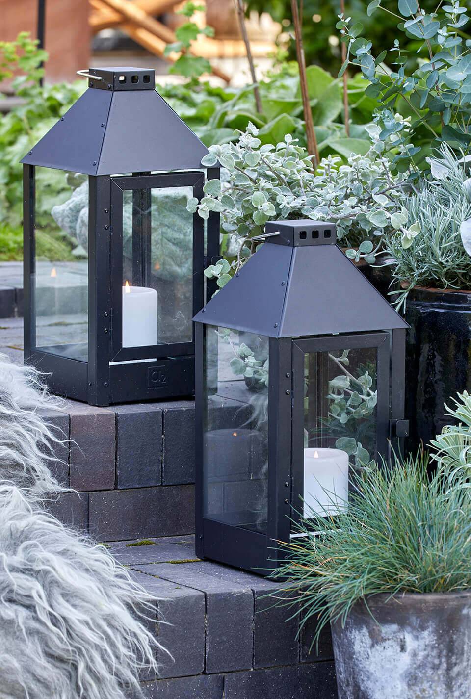 Die A2 Living Laterne hat ein schlichtes, minimalistisches und rustikales Design. Es besteht aus soliden Materialien und ist so konzipiert, dass es das ganze Jahr über draußen stehen kann.