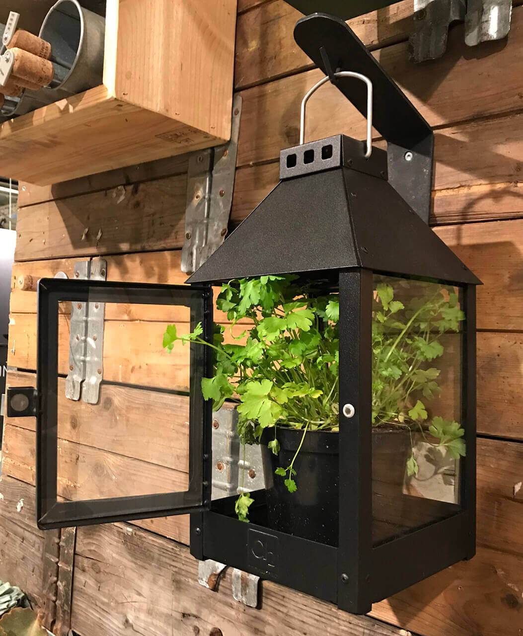 Galvanisierte, schwarz lackierte Mini-Ganzjahreslaterne mit einfachem und benutzerfreundlichem Magnetverschluss.