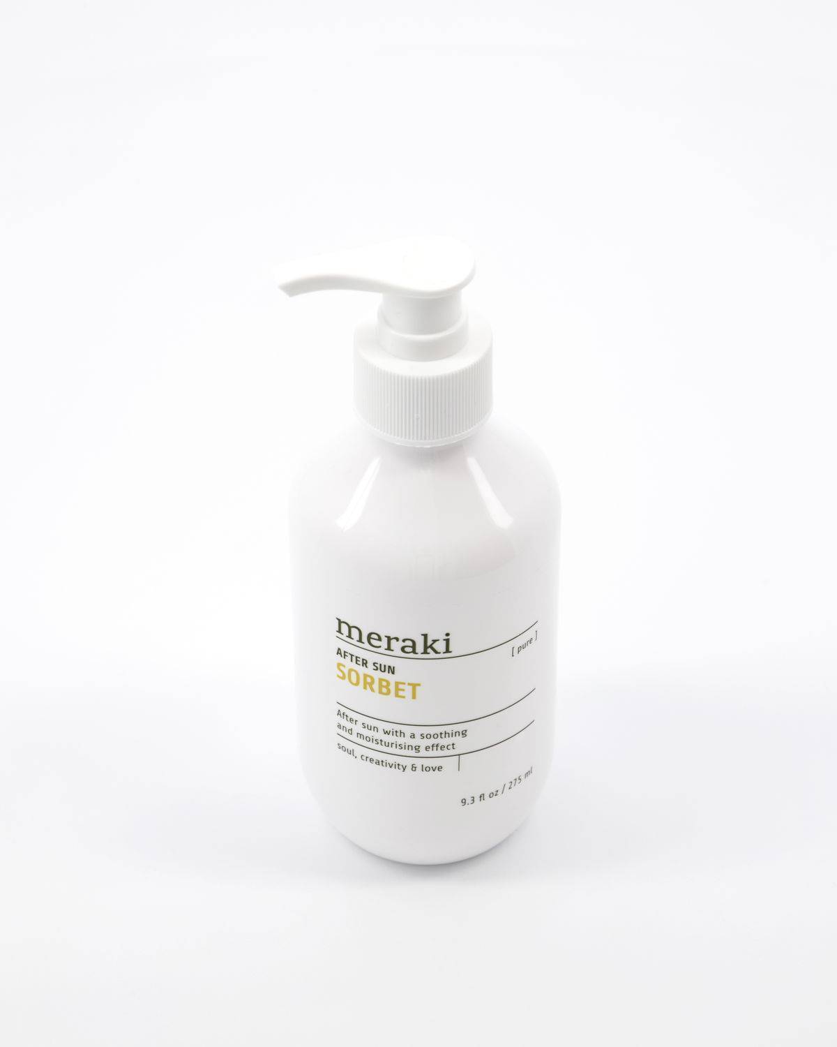 Das Auftragen von After Sun ist nach einem Aufenthalt in der Sonne unerlässlich. Dieses samtweiche PURE After Sun Sorbet von Meraki kühlt Ihre Haut mit beruhigender Aloe Vera. Reich an Mandelöl und Vitamin E werden sonnenbedingte Alterserscheinungen gemildert und Ihre Haut behält ihre Geschmeidigkeit. Das Sorbet zieht schnell ein und macht Ihre Haut glatt, hydratisiert und regeneriert. Ohne Parfüm ist es sowohl für Erwachsene als auch für Kinder geeignet. Zertifiziert von Asthma-Allergy Denmark und dem Nordic Swan Ecolabel. Für Veganer geeignet. Tragen Sie eine großzügige Menge auf, nachdem Sie sich in der Sonne aufgehalten haben.