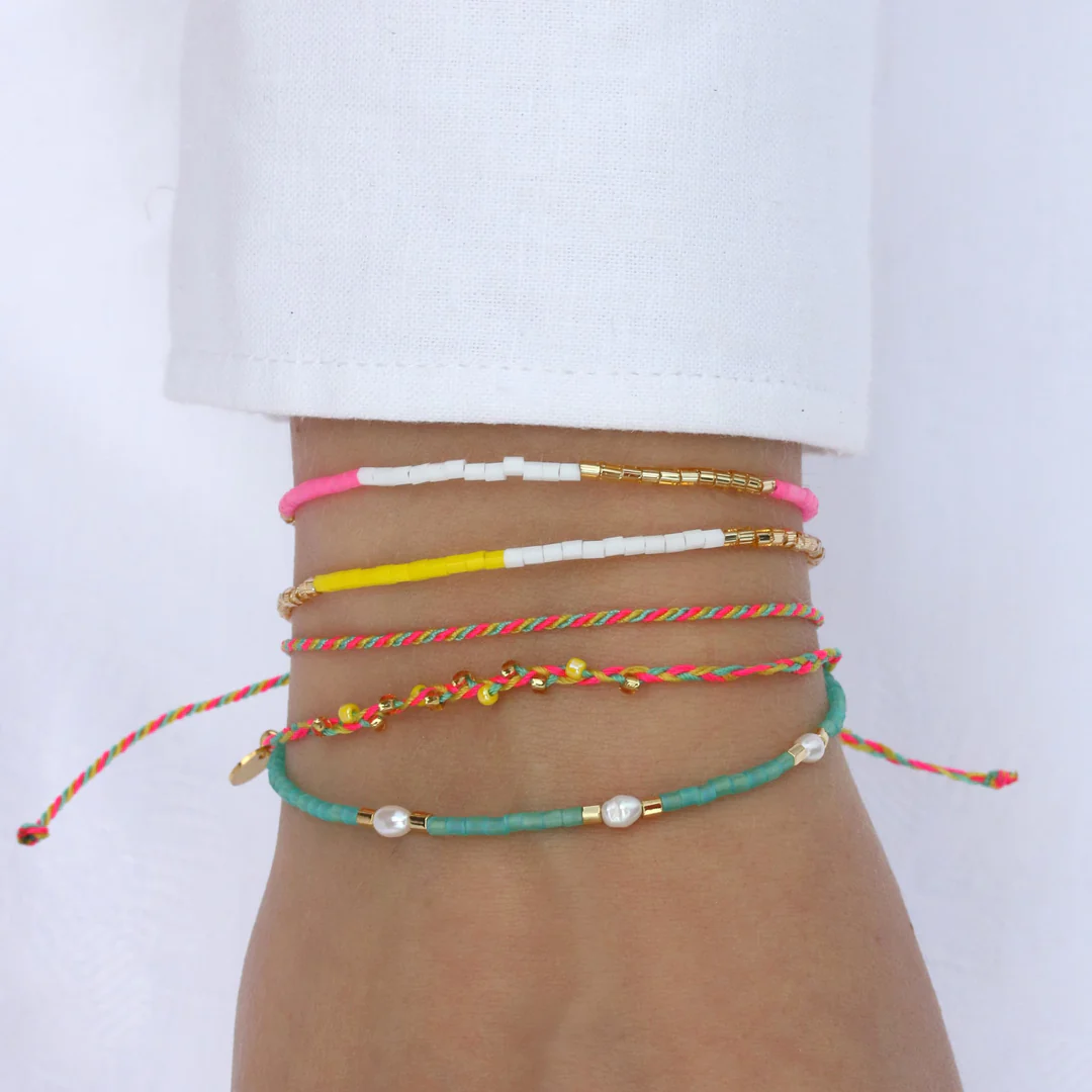 Cameriere, una Orangina con Limone per favore! Beim goldenen Armband Limone aus unserer Amalfi-Serie haben wir Perlen in Zitronengelb, Mattweiß und Gold in Abständen von 1,5 bis 2,5 cm angeordnet. Es eignet sich besonders gut zum Kombinieren mit dem farblich passenden Armband Orangina und ist ein Highlight im Mix-Set Limoncello.