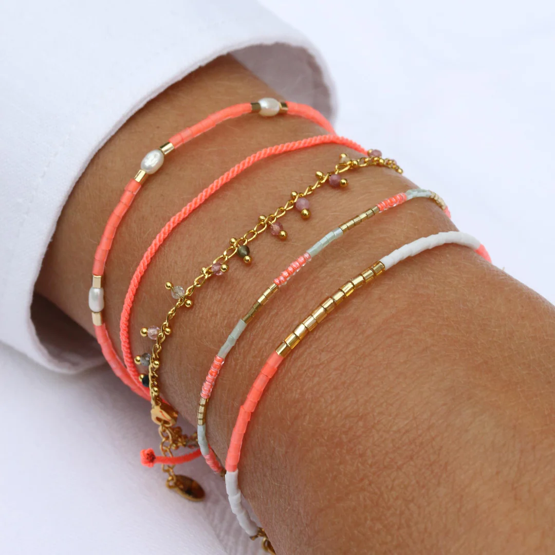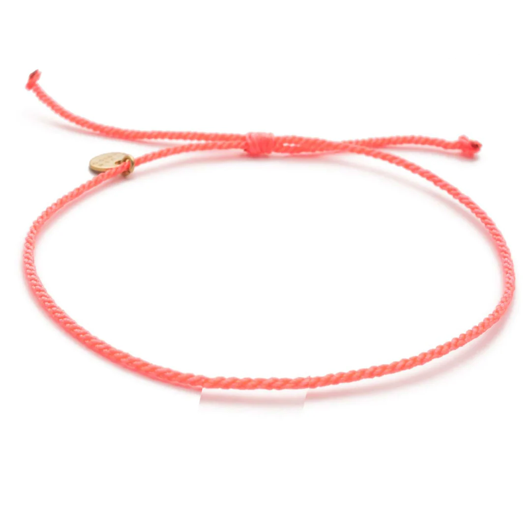 Das gezwirbelte True Temple Armband in Neon Coral ist inspiriert vom traditionellen Tridatu Tempel-Armband, welches jeder gläubige Hindu in Bali trägt.