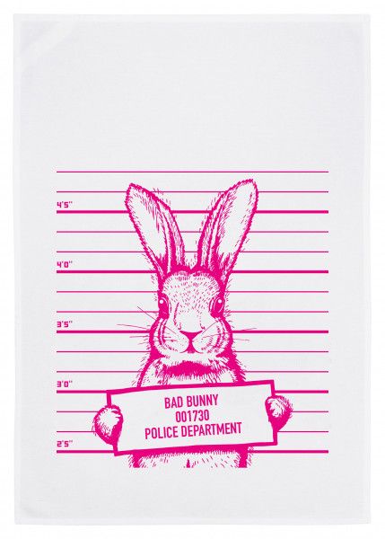 BAD BUNNY neonpink – Geschirrhandtuch weiß