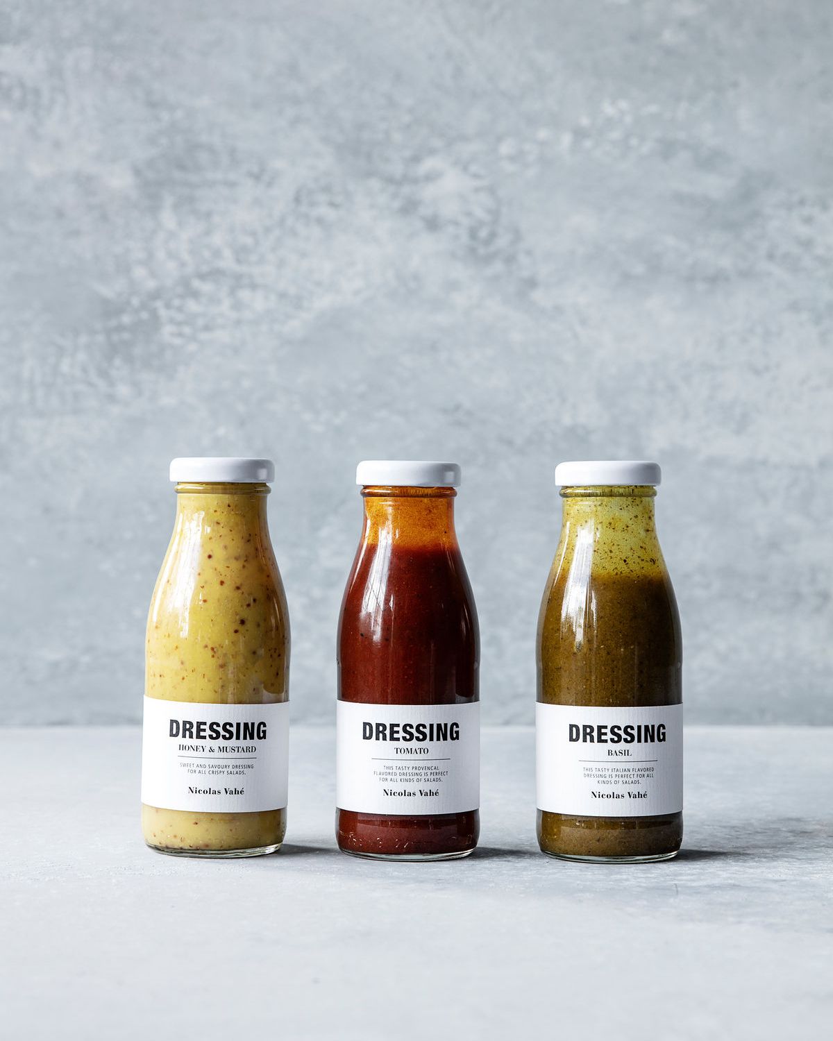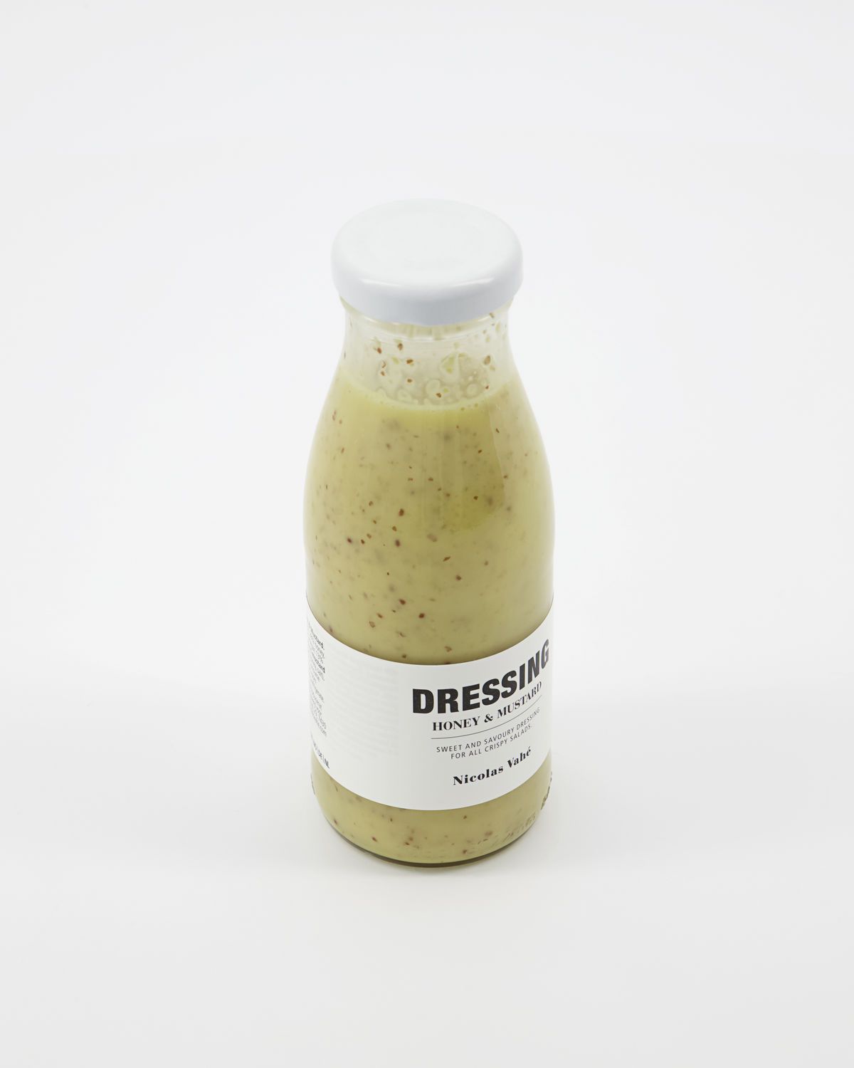 Fügen Sie Ihren Salaten mit diesem klassischen Salatdressing von Nicolas Vahé viel Geschmack hinzu. Das Dressing wird als klassische Vinaigrette mit kaltgepresstem Rapsöl, Apfelwein und Weißweinessig, Vollkorn Senf, Wasser, Honig und Zitronensaft hergestellt. Das Dressing hat viel Süße und passt perfekt zu einem knusprigen Salat oder als Dip für leckeres, frisch gebackenes Brot