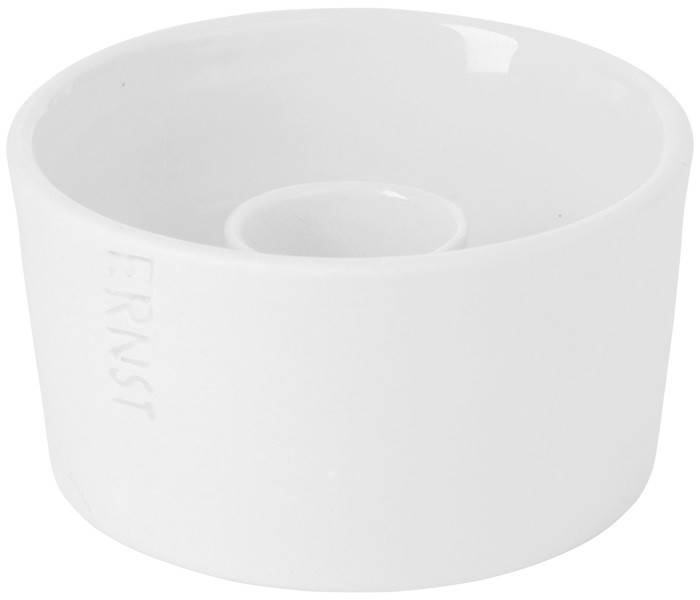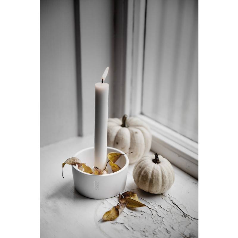 Der Kerzenständer aus Steinzeug ist in den Farben dunkelgrau und weiß erhältlich.