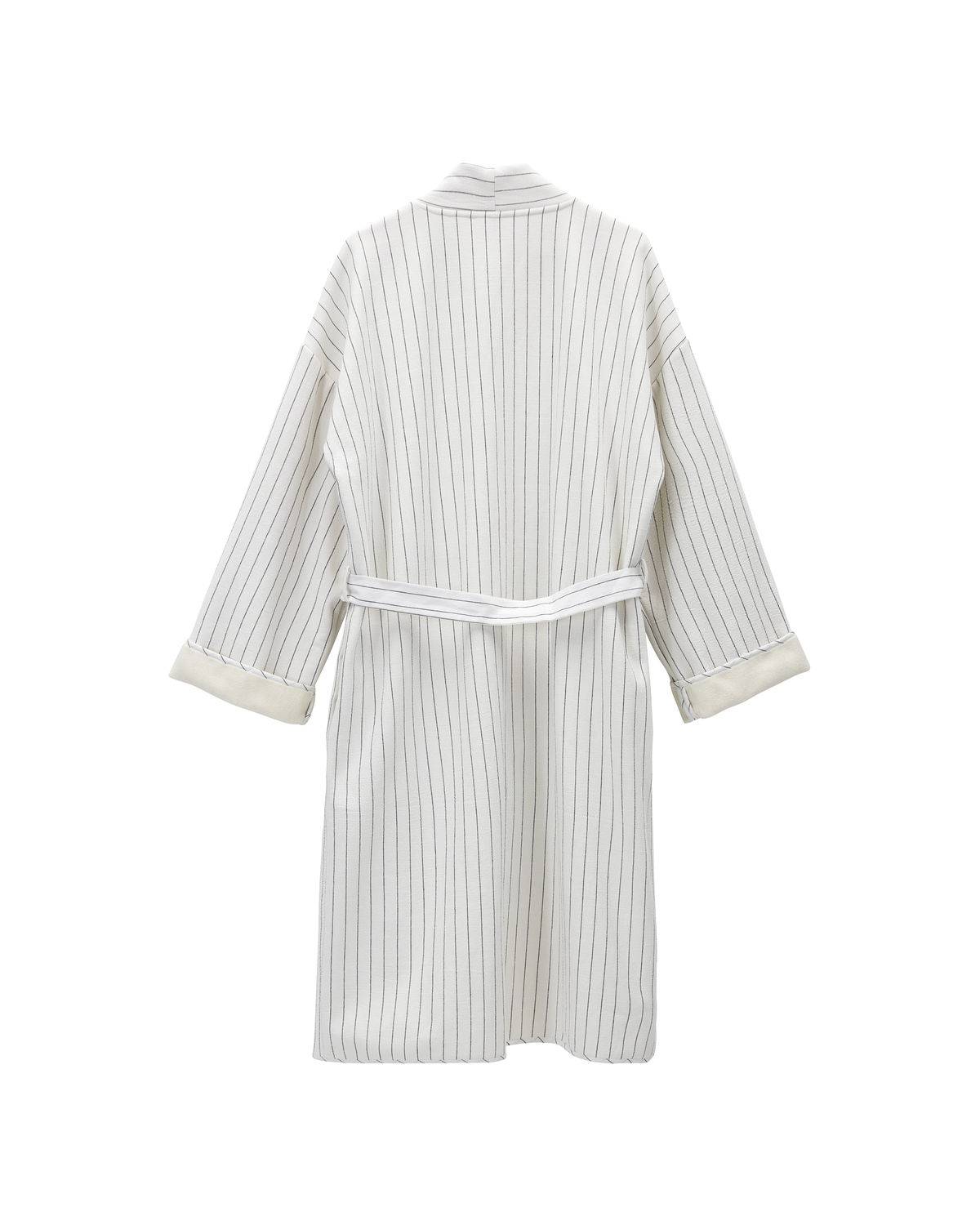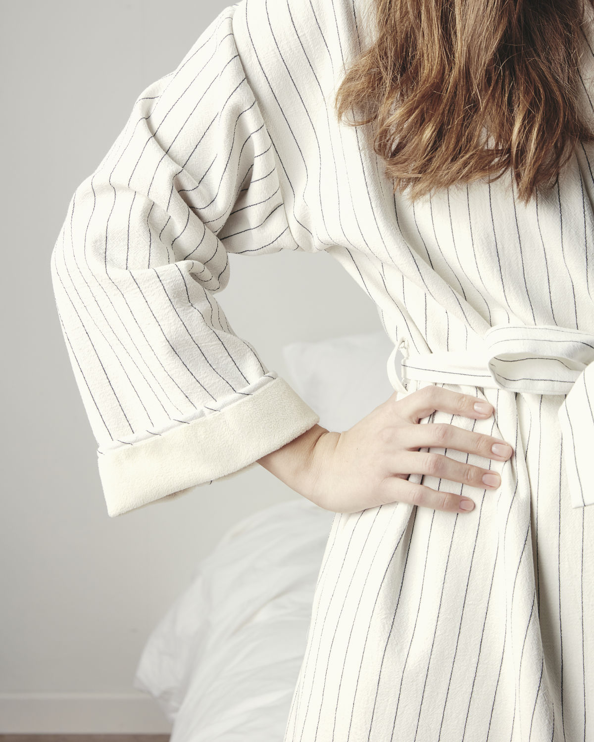 Dieser Baumwoll-Morgenmantel ist dein idealer Begleiter, wenn du dich nicht gleich morgens fertigmachen musst, sondern etwas Zeit für dich hast. byNORD hat Alrun mit einem Design ausgestattet, bei dem jedes kleinste Detail dezenten Luxus ausstrahlt. Der etwas schwerer Stoff mit weichem Teddyfutter auf der Innenseite. Die weiten Ärmel, der Schalkragen und die Nadelstreifen, die für einen eleganten Look sorgen. Kuschle dich in den weißen Kimono namens Alrun und verbringe einen entspannten Sonntag auf der Couch, an dem nichts auf dem Programm steht, außer im Moment präsent zu sein. Kuschle dich in den Morgenmantel, wenn du mit einer neuen Zeitschrift und einer Tasse Tee entspannen möchtest. Und auch sonst immer dann, wenn es auf luxuriösen Komfort ankommt. In einer Einheitsgröße erhältlich.
