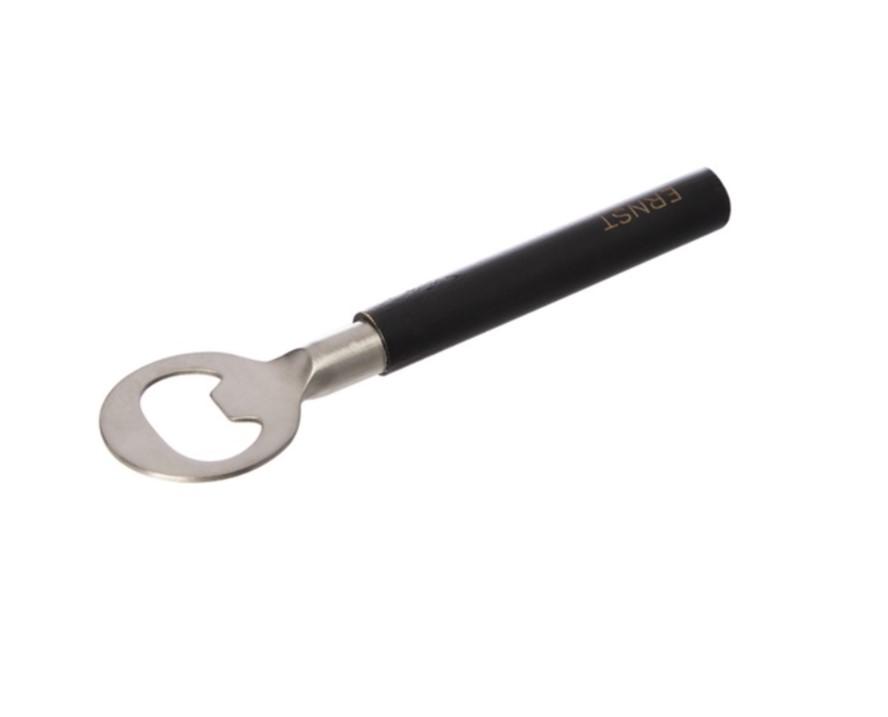 Ein dekorativer Flaschenöffner aus schwarzem Holz mit verchromtem Metall.