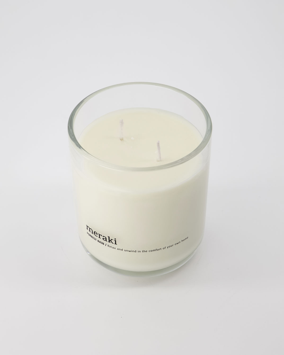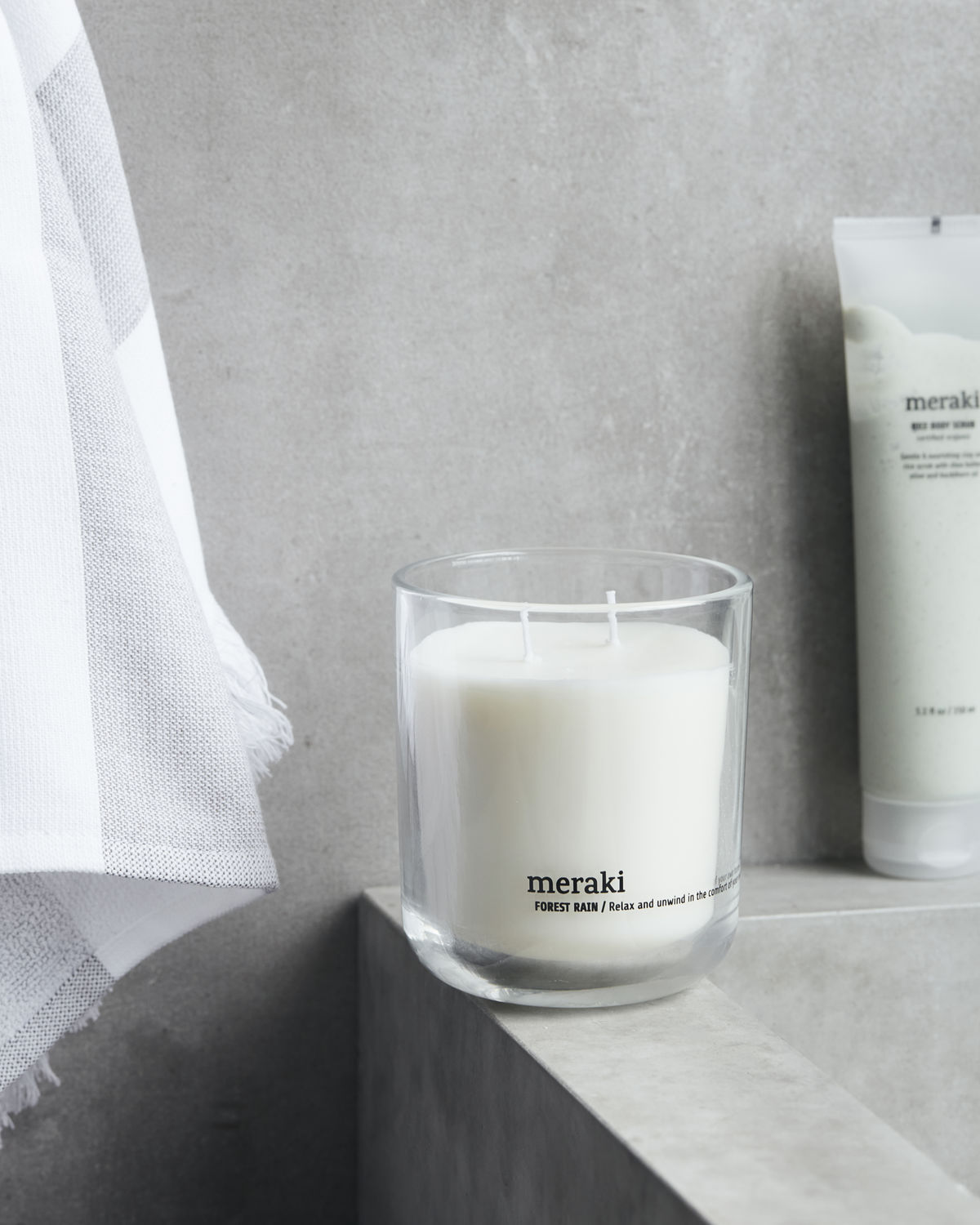 Verwandle dein Zuhause in einen Ort der Ruhe und Gelassenheit. Diese große Duftkerze von Meraki heißt Forest Rain und wird in einem transparenten Glas geliefert. Genieße den wunderbaren Duft von Forest Rain nicht nur in deinem Badezimmer, sondern auch im Wohnzimmer oder Schlafzimmer. Der Duft ist eine leichte und erfrischende Mischung aus Orange, Blüten, Oleander und Moschus und riecht genauso wie ein Waldspaziergang nach einem frischen Sommerregen. Überrasche einen lieben Menschen mit einem liebevollen Geschenk oder verwöhne dich selbst mit einem sinnlichen Duft.