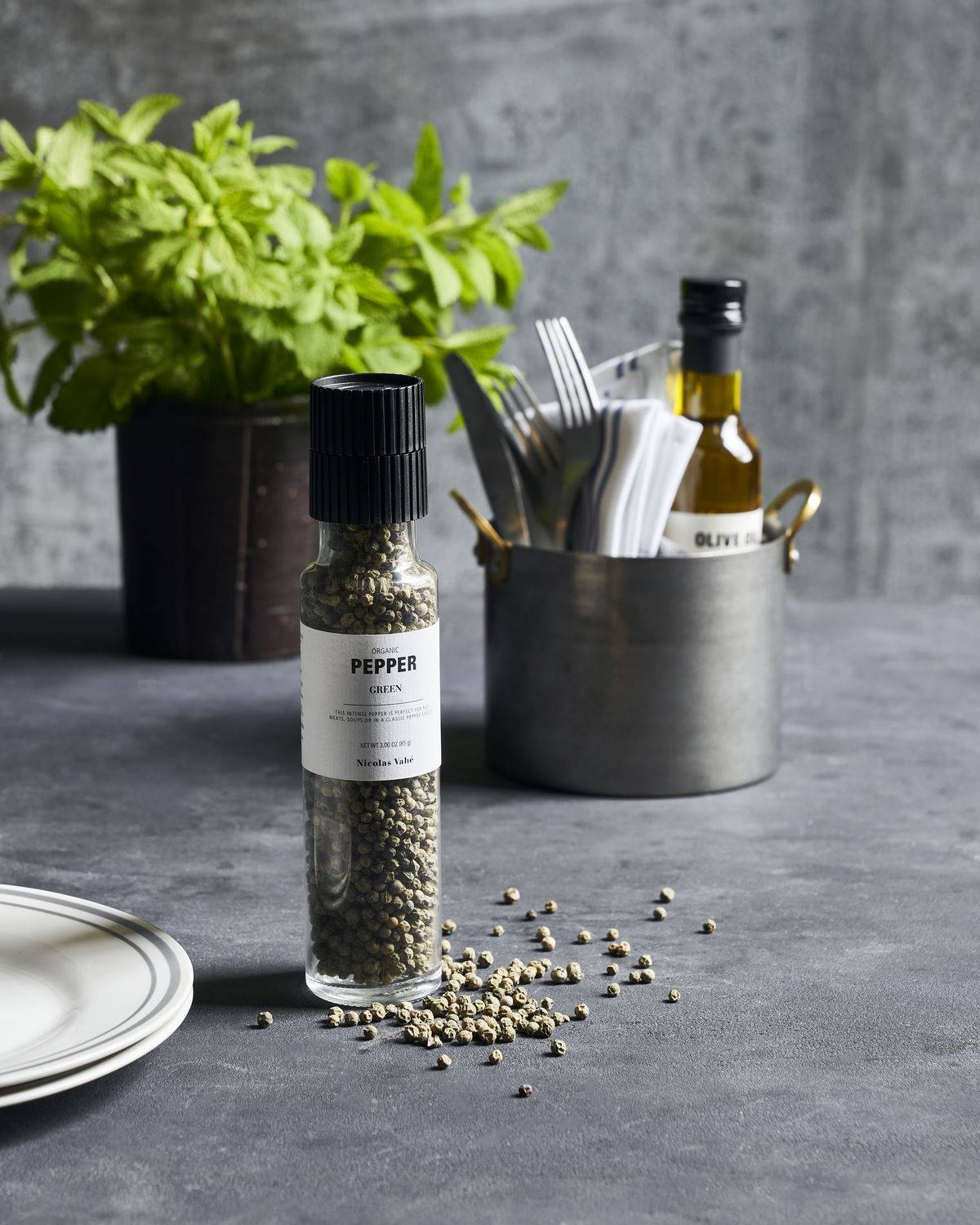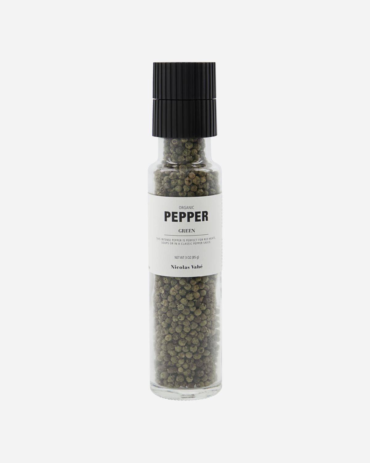Wenn dir schwarzer Pfeffer zu scharf ist, probier doch mal diesen grünen Bio-Pfeffer von Nicolas Vahé als Alternative. Die Mühle ist mit getrockneten grünen Pfefferkörnern gefüllt, die perfekt zu weißem Fisch, Bratensaucen oder anderen Gerichten passen, bei denen eine dezente Pfeffernote gewünscht ist. Die Pfeffermühle ist mit einer Keramikmühle ausgestattet, die den Pfeffer fein mahlt. So werden Öle freigesetzt, die deinen Gerichten mehr Aroma verleihen.