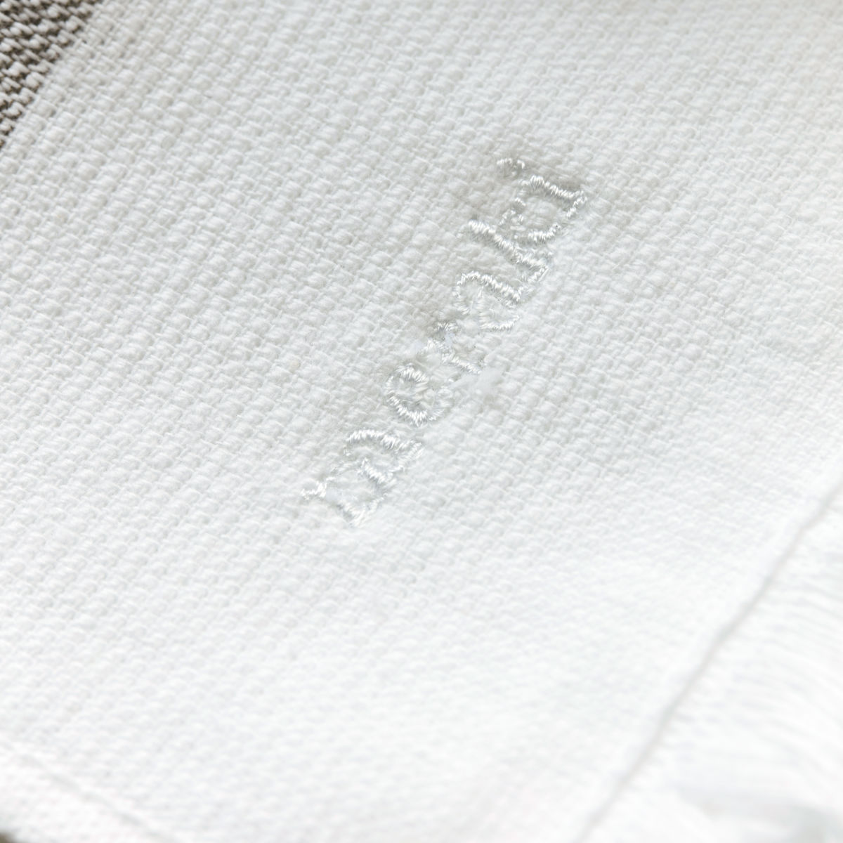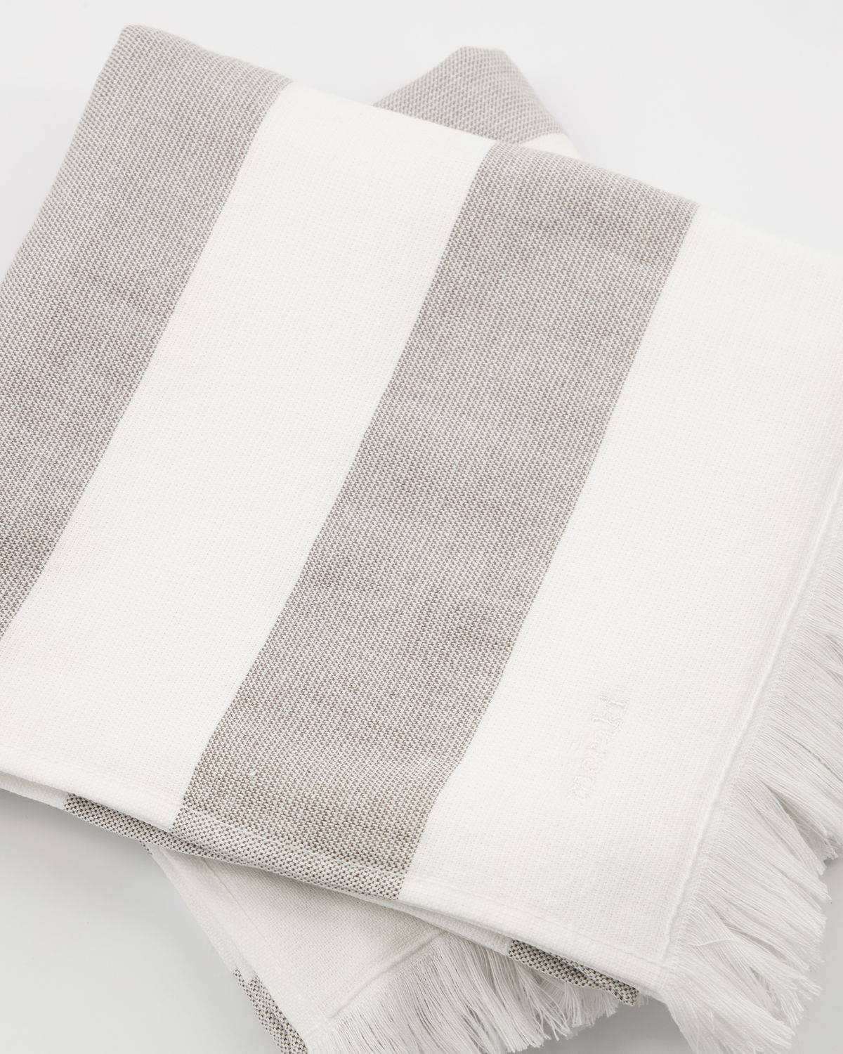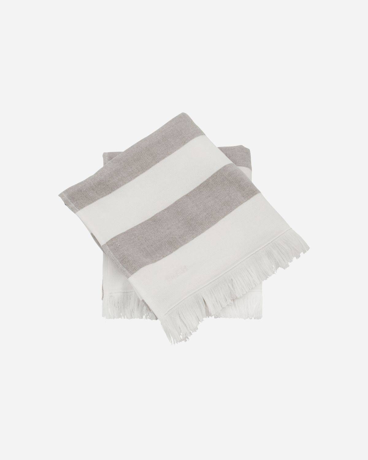 Genieße das Gefühl von Luxus im Alltag im eigenen Badezimmer und gönn dir mit diesem Set aus zwei gestreiften Baumwollhandtüchern einen flauschigen Verwöhnmoment. Sie heißen Barbarum und überzeugen mit ihrem raffinierten Design: Während eine Seite in normalem Baumwollgewebe gehalten ist, präsentiert sich die andere Seite in einem Frotteegewebe, um dir bei deiner Hautpflegeroutine höchsten Komfort bieten zu können. Dank der neutralen Streifen in Weiß und Braun unterstreichen diese Handtücher die beruhigende und entspannende Stimmung, die du in deinem Bad schaffen möchtest. Die Fransen runden den Look ab und sorgen dafür, dass die Handtücher zu einem hübschen Bestandteil deiner Badezimmerdeko werden.