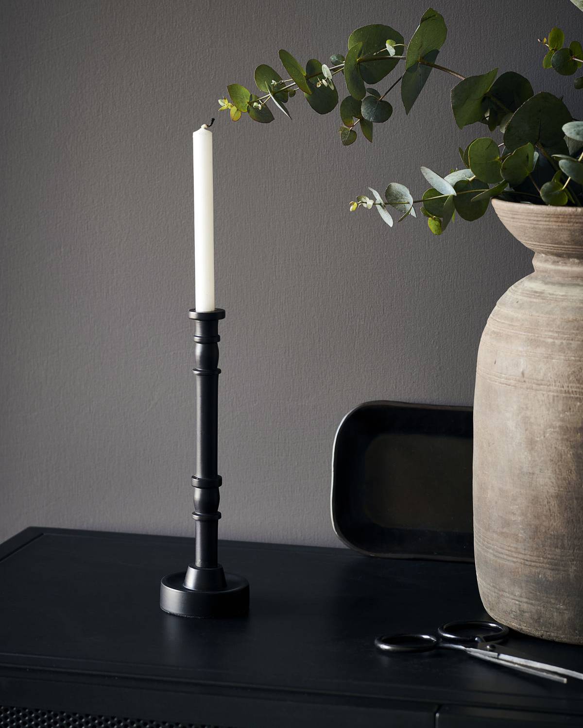 Subtile Eleganz sind die Worte, die den Kerzenständer Jersey mit braunem Finish von House Doctor am besten beschreiben. Klassik trifft hier auf Minimalismus. Dieses Modell ist die kleinste der drei verschiedenen Größen, in denen Jersey erhältlich ist. Stelle ein paar Jersey-Kerzenständer zusammen auf und sorge so für eine wohlige Stimmung an gemütlichen Abenden oder erschaffe ein einzigartiges Arrangement aus Vasen und anderen Kerzenständern für dein Wohnzimmer. Die Filzscheibe auf der Unterseite schützt deine Oberflächen vor Kratzern. Für Kerzen mit einem Durchmesser von 1,2 cm
