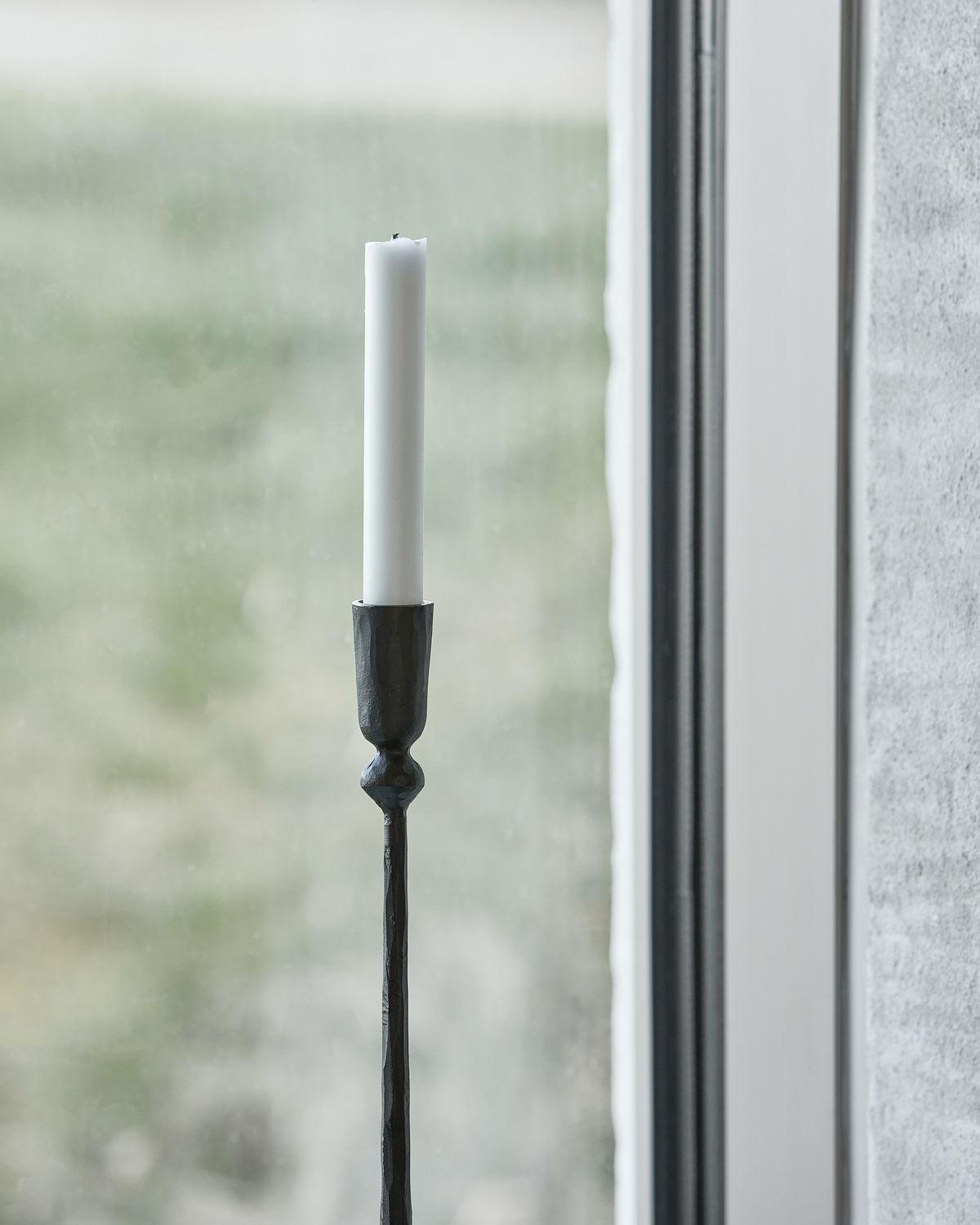 Dieser hohe Kerzenständer schafft eine einladende Stimmung, egal wo du ihn aufstellst. Trivo von House Doctor strahlt mit seinem handgemachten Design, der leicht ungleichmäßigen Form und dem schweren Eisen mit schwarzem Finish minimalistische Eleganz aus. Die Höhe fällt noch mehr auf und wird zu einem echten Blickfang, wenn du eine Kerze hineinstellst. Stell den Kerzenständer im Flur oder Wohnzimmer auf und freu dich über seinen Skulpturcharakter. Oder verwende ihn als Centerpiece auf dem Esstisch. Auch in einer größeren Version (80cm) verfügbar.