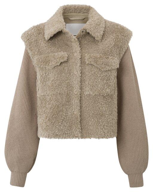 Kurze Teddyjacke mit langen Puffärmeln und Taschen