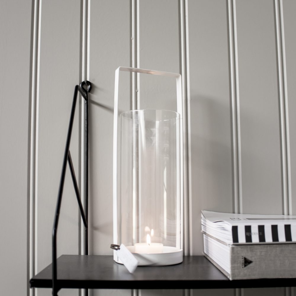 Zylindrische Glaslaterne in einem Metallständer. Kvarnvik wurde mit der Absicht entworfen, eine Marktlücke zu schließen, in der Storefactory einen Bedarf an modernen Laternen sah, die für trendige, moderne Wohnräume geeignet sind, sowie für rustikalere Umgebungen wie ein Sommerhaus. Fülle es mit einer großen Stumpenkerze oder Teelicht. Es ist deine Entscheidung.