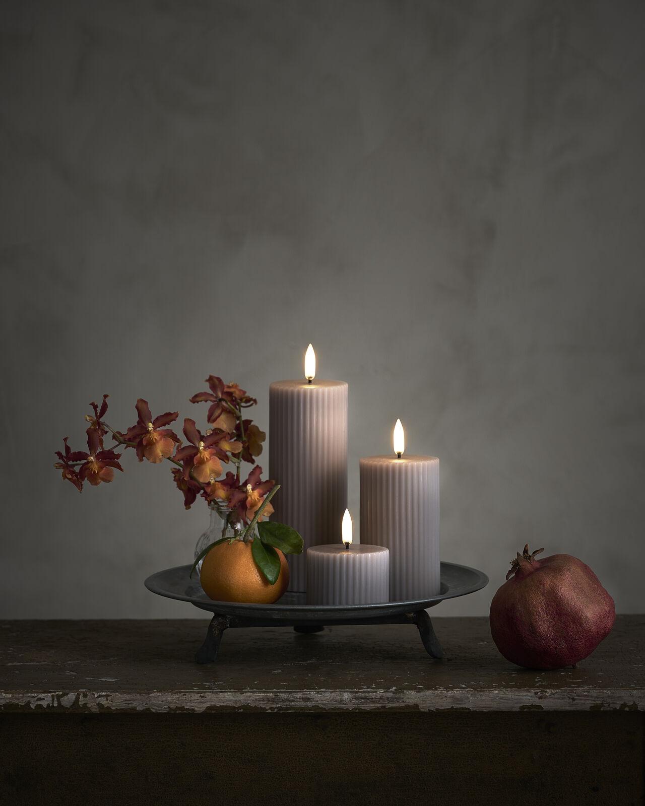 Neben einer wundervollen gerillten Haptik überzeugt diese Kerze mit der warmen LED Flamme. Das neu patentierte Verfahren garantiert eine Flamme die täuschend echt aussieht. Vorbei ist die Zeit wo man sich um offene Flammen Gedanken machen muss.