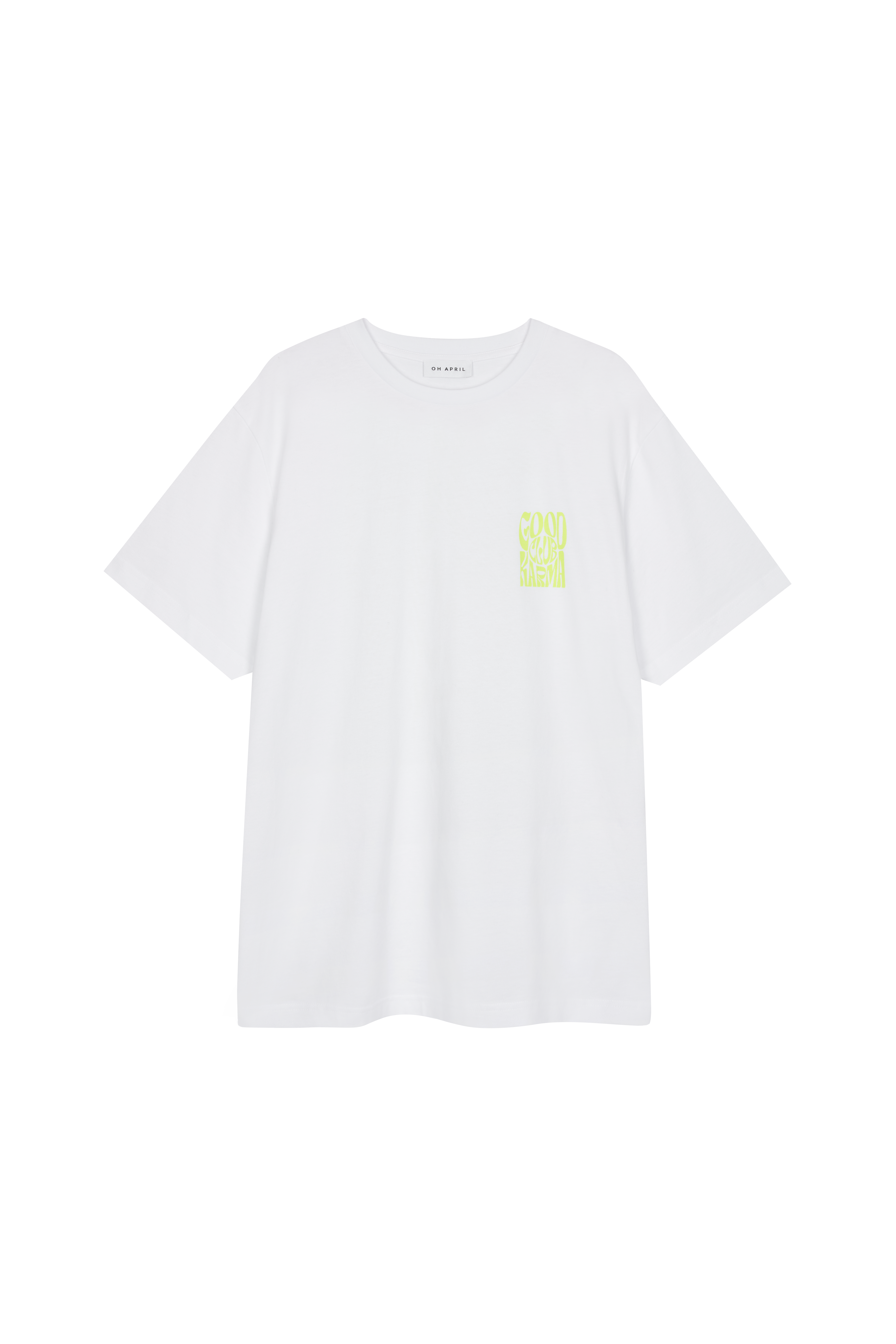OH APRIL | Boyfriend T-Shirt GOOD Karma Club | White-Lime
