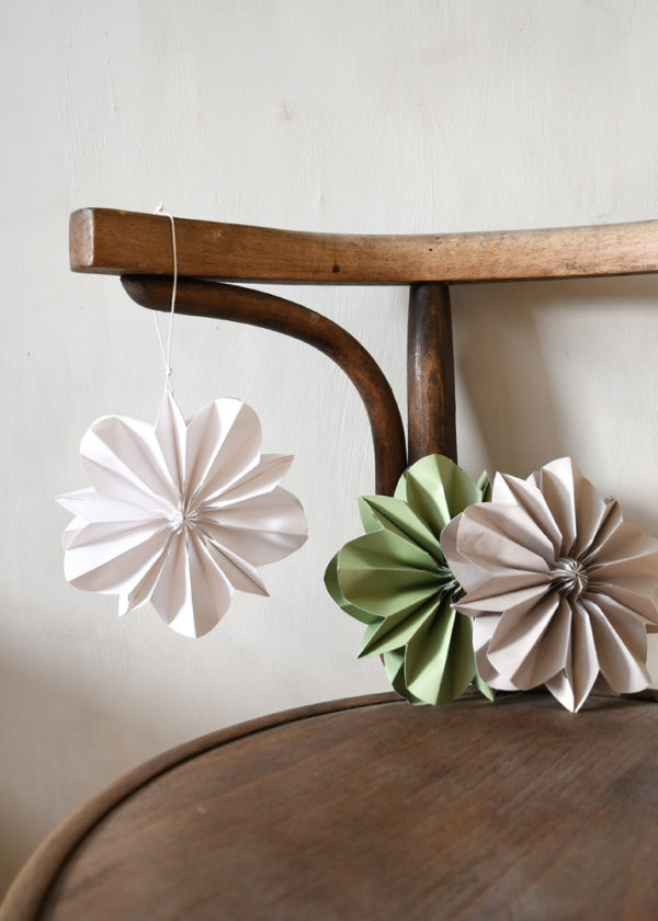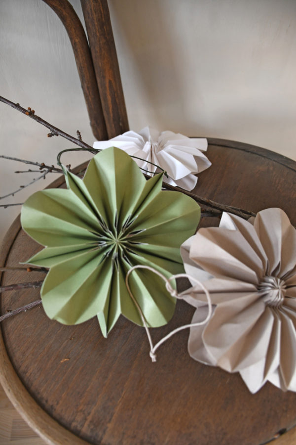 Papierblume mit Aufhängung und Magnetverschluss.