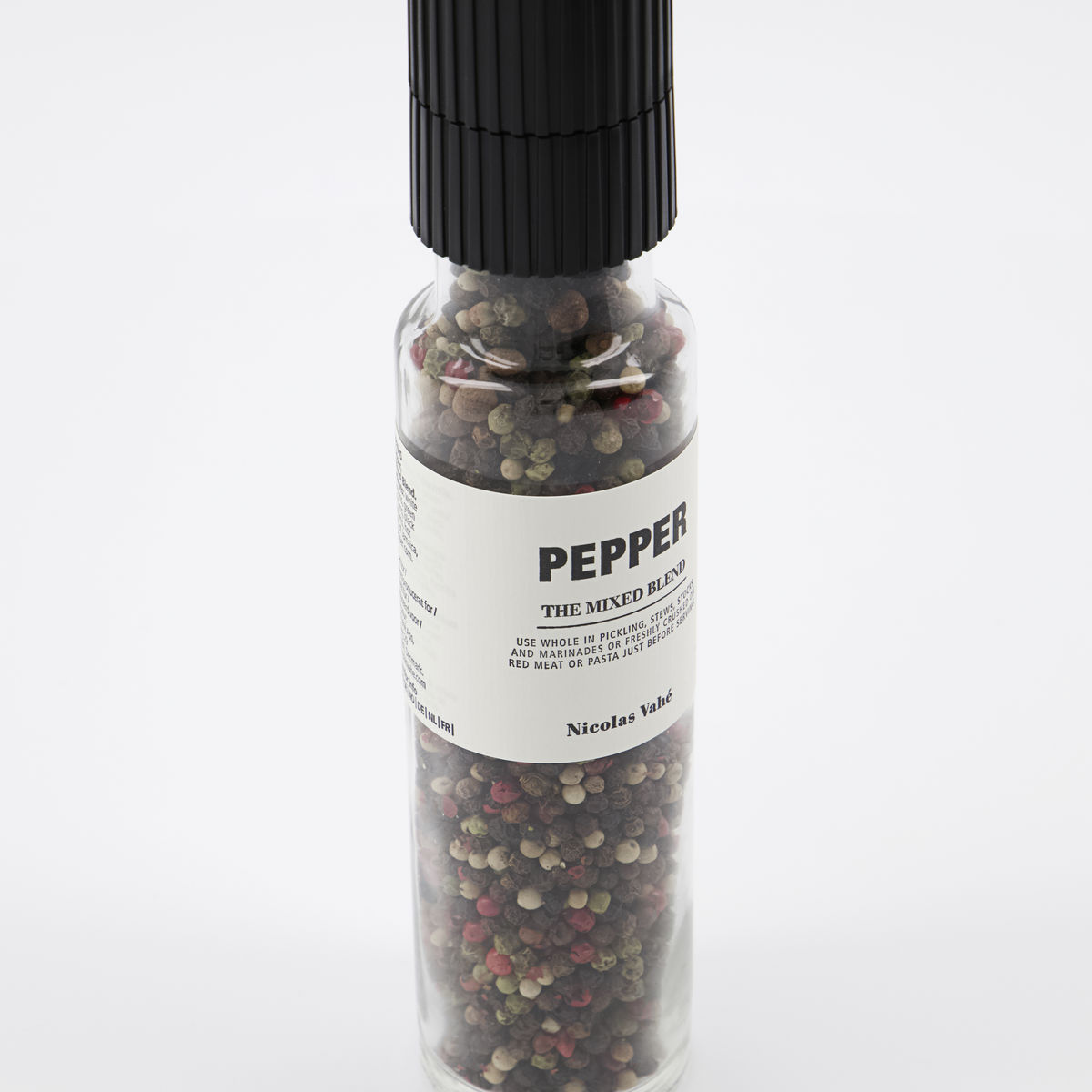 Genießen Sie die klassische Pfeffermischung von Nicolas Vahé aus fünf verschiedenen Sorten Pfeffer: weiße, rote, grüne, pinke und schwarze Pfefferkörner. Diese Pfeffermischung ist ein echter Klassiker und eine unverzichtbare Zutat auf dem Esstisch, besonders in Kombination mit Nicolas Vahés beliebtem französischen Meersalz. Die Pfeffermischung kommt in einer praktischen Mühle, sodass Sie Ihren Gerichten schnell und einfach ein wenig zusätzlichen Geschmack verleihen können. In der praktische Keramikmühle kannst du die Gewürze ganz fein mahlen. So werden Öle freigesetzt, die noch mehr Geschmack und Aroma auf den Teller bringen.