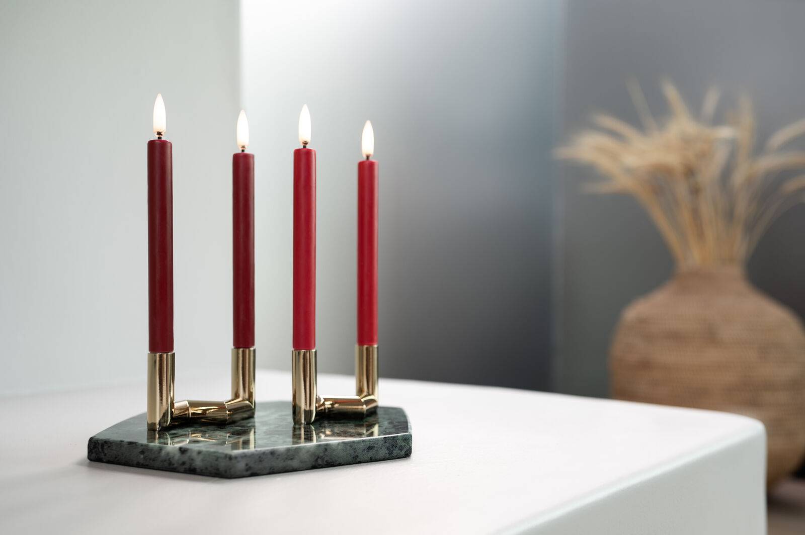 Ihn schmücken sowohl die Piffany LED-Stabkerzen als auch “normale”.