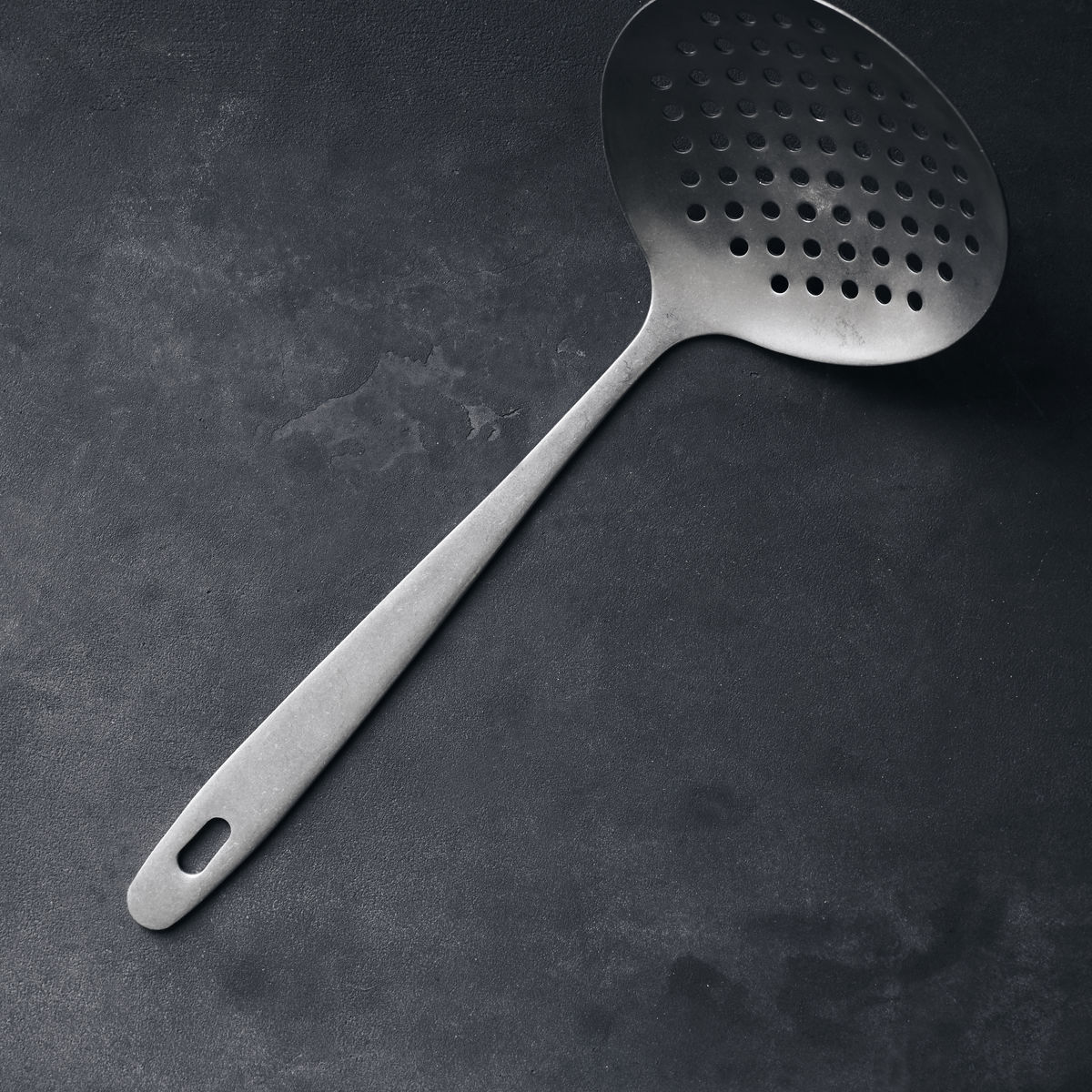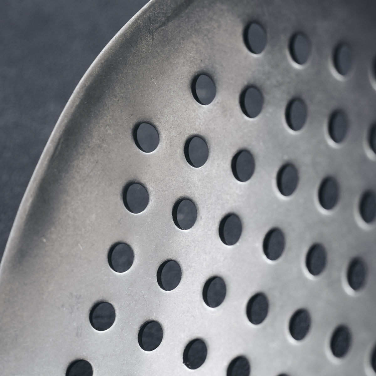Eine Schaumkelle ist ein wahres Must-Have für jeden Hobbykoch und Feinschmecker. Dieses vielseitig einsetzbare Küchenwerkzeug wurde von Nicolas Vahé in einem minimalistischen Industrial-Look entworfen. Egal, ob du gerade Pasta, Gemüse oder Kartoffeln kochst. Mit der Schaumkelle kannst du den Topfinhalt aus dem kochenden Wasser holen, ohne es abgießen zu müssen. Die vielen kleinen Löcher sorgen dafür, dass das Wasser ablaufen kann und nicht auf deinem Teller landet. Die Schaumkelle ist Teil des Daily-Sortiments, das aus Küchen-Essentials aus Edelstahl besteht.