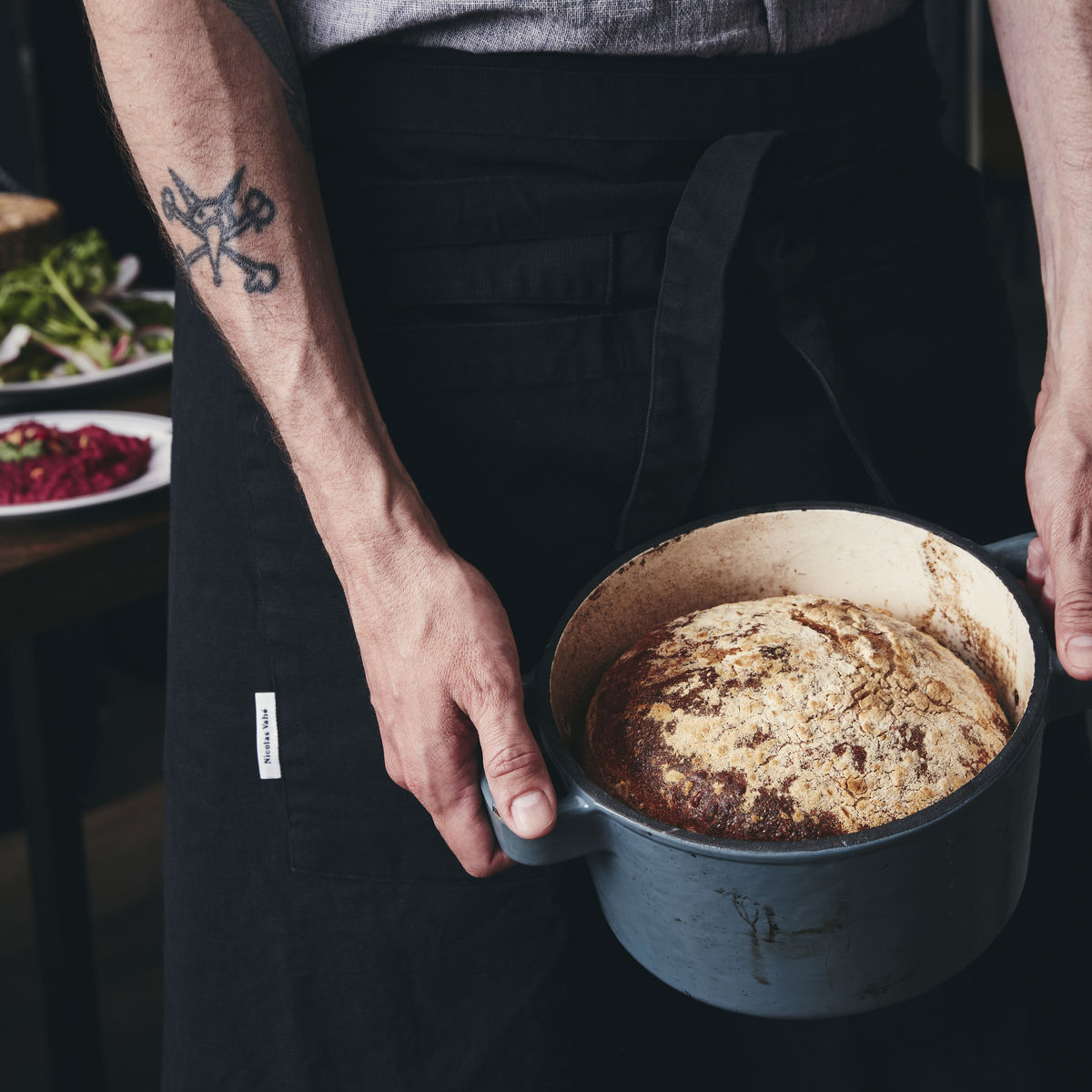 Schütze deine Kleidung mit dieser Schürze von Nicolas Vahé. Neat ist aus gewaschener Baumwolle gefertigt und präsentiert sich in einem edlen und zeitlosen Schwarz. Sie wird hinten gebunden, während der Nackenriemen verstellbar ist. Dank der großzügigen Taschen in verschiedenen Größen hast du genügend Stauraum für all die Utensilien, die du benötigst, um ein köstliches Essen für deine Gäste auf den Tisch zu zaubern. Selbst wenn du einem Fertiggericht nur den letzten Schliff gibst, siehst du in dieser Schürze aus wie ein echter Profikoch.