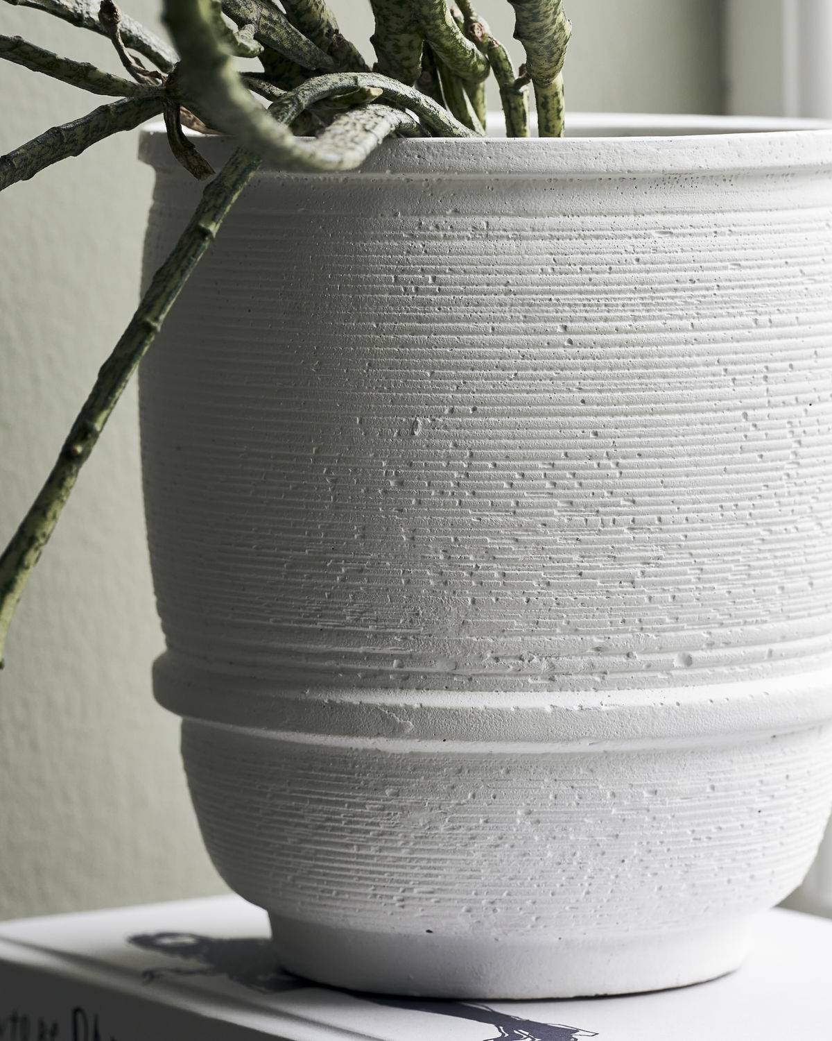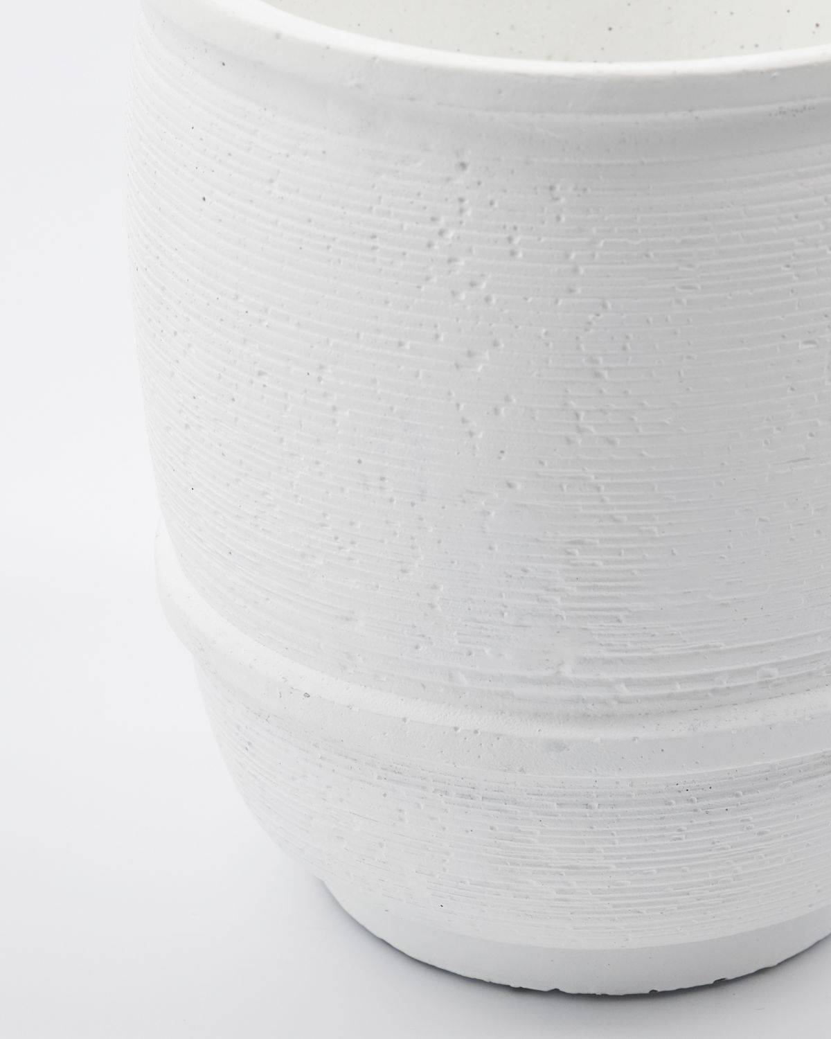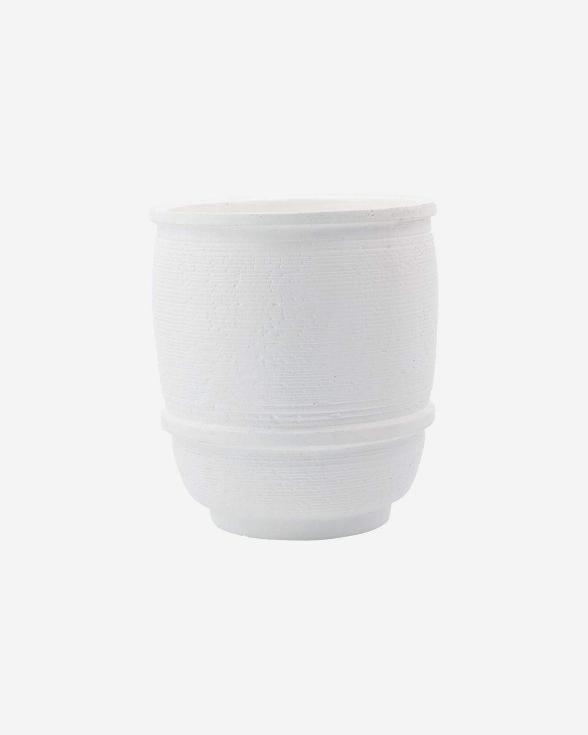 Bring mit Ground einen hellen Akzent in deine Wohnungsdeko. Der weiße Beton-Übertopf von House Doctor präsentiert sich mit feinen Rillen in der Oberflächenstruktur, die für einen besonders bodenständigen Look mit feinen Details sorgt. Der fast reinweiße Übertopf bringt einen wunderschönen hellen Akzent auf ein Fensterbrett, einen Beistelltisch oder ein Wohnzimmerregal. Lass ihn alle Blicke auf sich ziehen und präsentiere ihn als alleinstehendes Highlight oder biete mit Silber-Deko oder klarem Glas einen hübschen Kontrast zu Grounds rustikalem Look. Auch in einer größeren Größe verfügbar. Da der Übertopf handgemacht ist, können Finish, Größe und Farbe variieren.