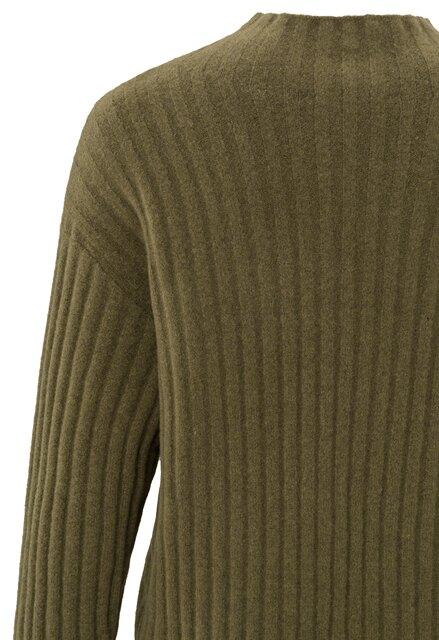 YAYA | Gerippter Pullover mit Stehkragen | olivgrün