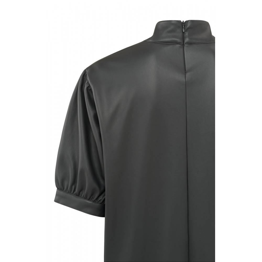 YAYA | Kunstlederkleid mit Stehkragen, Puffärmeln und Reißverschluss
