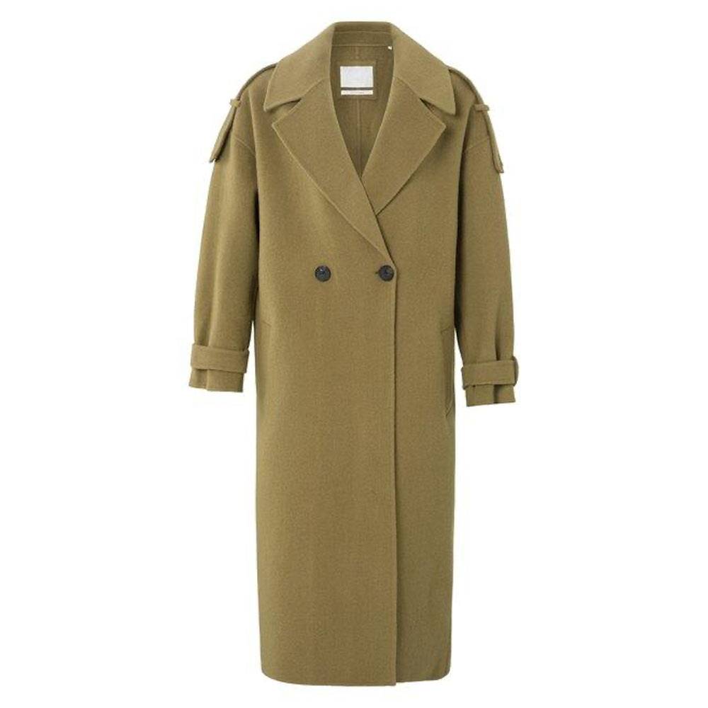 Ein sorgfältig gearbeiteter Langmantel aus einem Wollmix mit langen Ärmeln und Taschen.