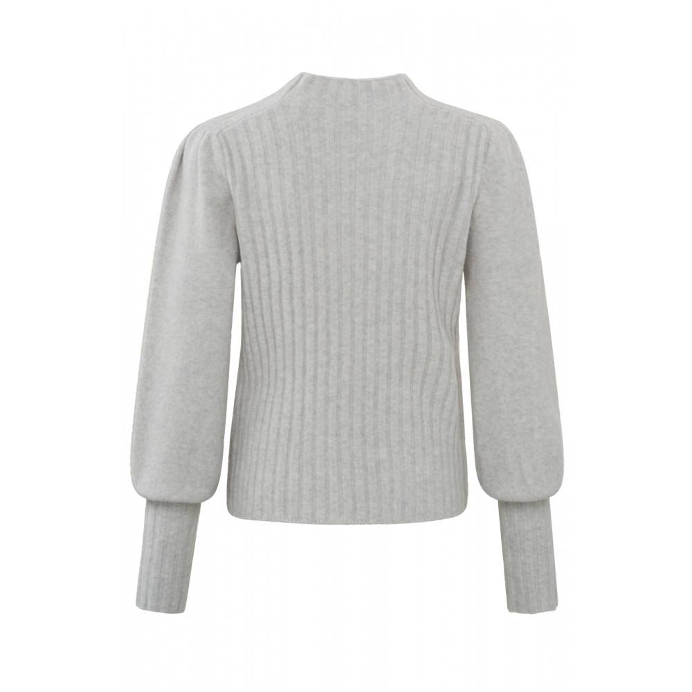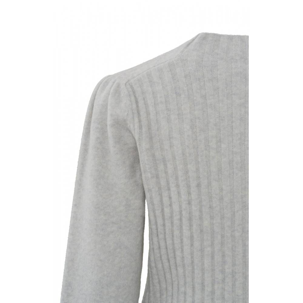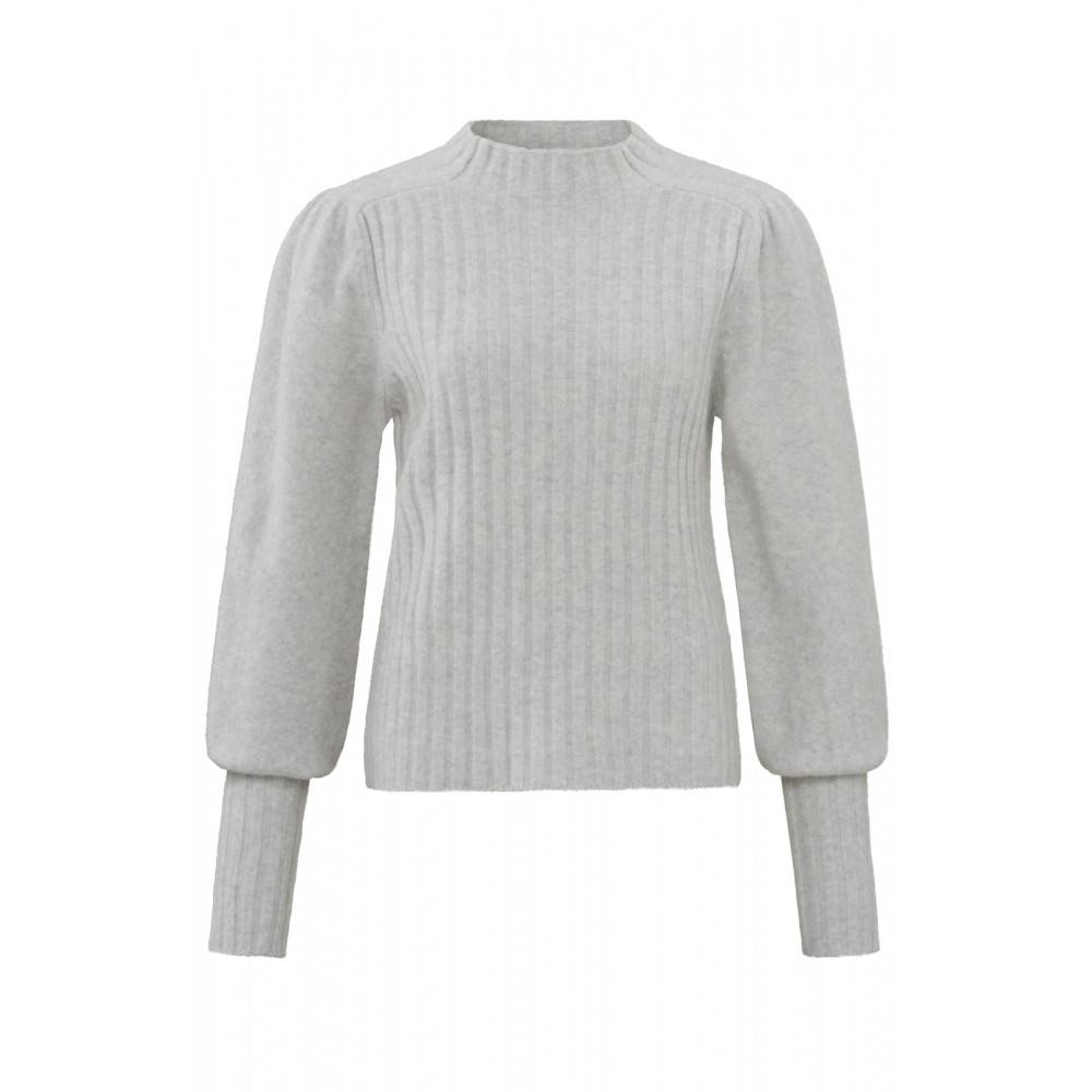 YAYA | Rundhalspulli mit langen Puffärmeln und Rippstrickverzierung | Grau